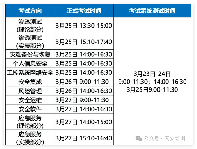 现将信息安全保障人员认证(CISAW)2026年3月线上考试安排公布如下,因故无法参加线下本地考试的考生,可登录网数中心人员认证业务管理系统报名参加线上考试。